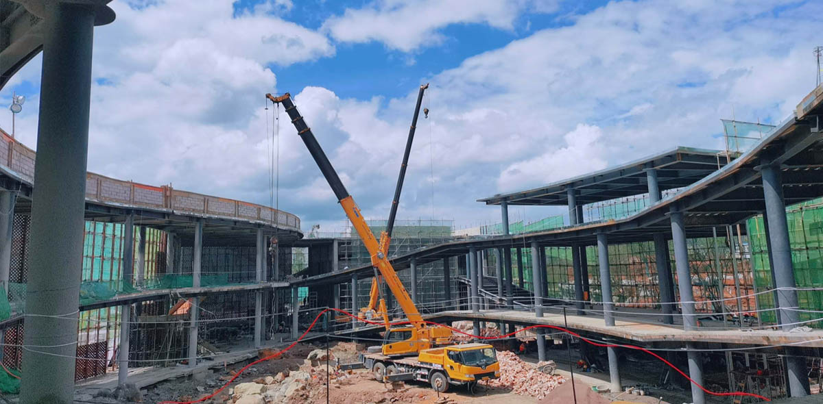 通常每平方米含鋼量大于50kg,鋼板厚度大于10mm,行車起吊大于25噸,習慣上稱之為重鋼結構,主要用于大型廠房和多高層框架鋼結構,如大型廠房和裝配車間,醫院、學校等多高層建筑。